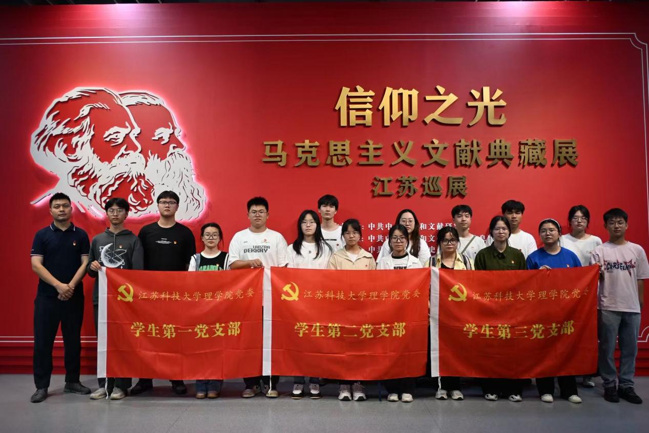 在南京图书馆,师生党员现场参观了正在巡展的“信仰之光——马克思主义文献典藏展” 。此次巡展由中央党史和文献研究院举办,中央党史和文献研究院信息资料馆、江苏省委党史工办、南京市委宣传部等部门承办。展览分“真理力量 薪火相传”“手稿藏书 经久弥珍”“经典巨著 思想丰碑”“‘两个结合’ 最大法宝”四个部分,展陈展品近400件,其中包括首次公开的马克思恩格斯手稿等珍贵文献。展览通过珍贵的手稿、历史档案和影像资料,生动展现马克思主义经典著作创作背景、传播历程及深远影响,为师生党员提供了深入学习马克思主义经典著作的契机,助力他们汲取精神养分,回顾马克思主义中国化时代化历程,从中凝聚奋进力量。师生党员们认真聆听志愿者的讲解,通过与文献典藏的心灵对话,感悟信仰之光和思想伟力。