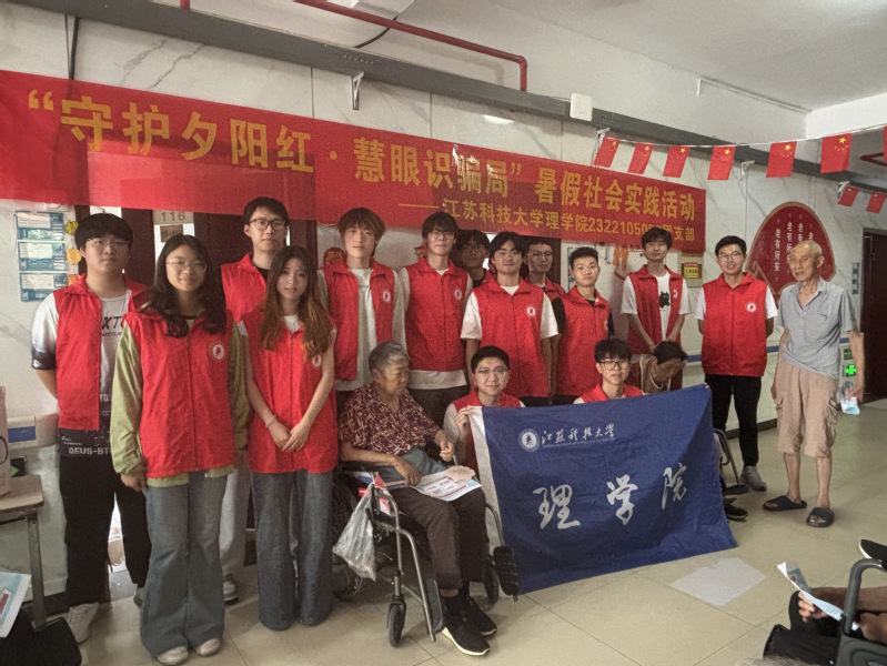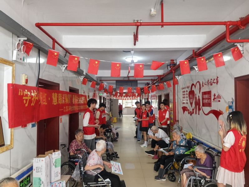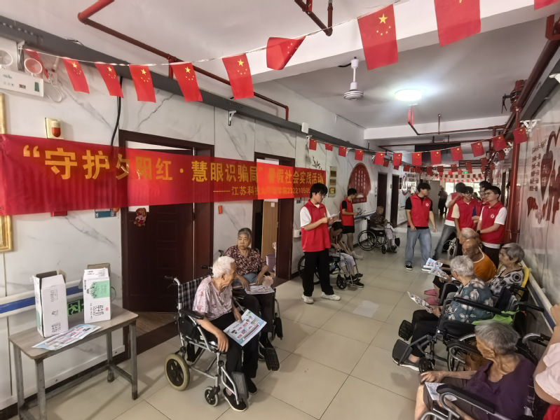 7月26日下午,镇江市丹徒区西麓郁金香怡养院内暖意融融,太阳成集团122ccvip2322105052团支部的老员工志愿者们,结合精心制作的传单和生动案例,耐心讲解网络诈骗防范知识,开展了一场以“守护夕阳红・慧眼识骗局” —— 老年人网络诈骗防范指南为主题的社会实践活动。