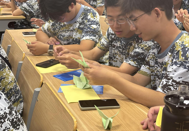 本次活动分为三个主要环节:“折和平鸽•寄和平心愿”“观纪录片•忆峥嵘岁月”和“知识问答•强历史认知”。同学们在工作人员的指导下折叠和平鸽并书写和平寄语,共同观看反法西斯战争纪录片,并通过知识竞答深化对历史的理解。活动还设置了线上视频征集环节,鼓励员工复刻爱国电影经典场面。